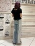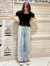 骨格ウェーブおすすめのメリハリコーデ 【トップス】 スクエアネックのブラウスは大人っぽさを出してくれつつパフスリーブやリボンでガーリーさも◎すっきりとした丈感なのでロングボトムも重たく見えず決まります。 【パンツ】 レースとリボンのデザインが唯一無二なデニムは、柔らかくて履き心地◎ 裾のスリットで少しフレアなシルエットになるので、よりバランスよく履いていただけます。