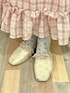 リボンたくさんピンクコーデ 【トップス】 パフスリーブと襟元のリボンがかわいいブラウスは、薄手で通気性の良い素材なので、真夏も涼しく着ていただけます。シャツ特有の張り付く感じがなくさらっとした着用感となっています。 【ワンピース】 チェック柄とフリルとリボンでコーデの主役にしていただけるワンピース。ピンクはヴィンテージ感のあるくすみカラーで、ベースと柄でトーンの異なるピンクを使用しており、華やかさ◎ 【シューズ】 トレンドのバレエシューズがメリーらしい柄で登場!リボンの部分はゴムになっているので着脱も楽ちん。 靴下合わせでオールシーズン着用できます◎ 24.0cmでLがちょうどよかったです!