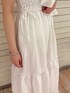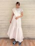 ドッキングフレアワンピースオフホワイトのおすすめコーデ 【ワンピース】 レースのカットトップスとフレアスカートが一体になっていて、ウエストのサイドにあるリボンでウエストマークが可能です◎ スカートに光沢感があり、オケージョンや大人っぽいアイテムがお好きな方にもおすすめです! 【つけ襟】 3wayで使える長さ調節可能なつけ襟は、斜め掛けでサッシュとして使うとトレンド感◎ 【シューズ】 ローヒールで歩きやすく、ギンガムチェックが存在感のあるパンプス!かかとの部分は根本がゴム使用なのでフィット感◎! 24.0cmでL着用。