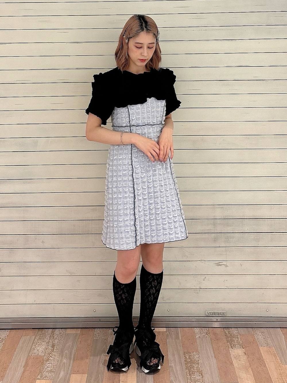 大人ガーリーコーデ 【トップス】 大きめの襟がポイントのブラウスは、サラッとした素材で夏も涼しく着ていただけます◎スクエアカラーなので甘すぎずさまざまな系統に合わせていただけます。 【ワンピース】 立体的な素材が高級感のあるワンピース。後ろの紐で長さ調節が可能。長すぎず短すぎない丈感で、普段ミニ丈をあまり着ない方にも挑戦していただけます! 【シューズ】 厚底ですがスニーカーソールなので歩きやすさ◎大きいリボンがポイントで、ブラックは甘過ぎずヴィンテージ感のあるコーデにも馴染みます。 24.0cmは普段Lを履きますがこちらのアイテムはMの方がぴったりでした!