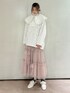 ホワイト×ピンクの大人ガーリーコーデ 【トップス(上)】 オーバーサイズのアノラックは、襟も大きめでゆるっとガーリーに来ていただけます!しっかりした生地とダブルボタンでラフすぎず、ジャケットライクな一枚! 【トップス(下)】 レースとフリルが華やかなトップスは、透け感があるので暑いうちから取り入れやすいアイテム◎カーディガンやキャミワンピのインナーにおすすめです! 【スカート】 ふわっとしたフレアシルエットと大きいリボンがポイント。ウエストはゴムで軽い素材なので着心地も良く、どんなトップスにも合わせやすい一枚。 【シューズ】 フラットシューズなので歩きやすく、つま先のスクエアが大人っぽいアイテム。きれいめコーデにもガーリーコーデにも合わせやすいです◎ 24.0cmでLを着用しております。