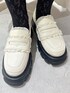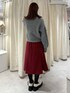 グレー×ボルドー秋コーデ 【トップス(上)】 リボンがたくさんついたニットは柔らかく着やすさ◎ゆったりしたサイズ感なのでレイヤードも楽しめます!色味はシンプルなので着回し力◎ 【トップス(下)】 首元がフリルになっているタートルニットはキャミワンピやカーディガンなどとのレイヤードにとってもおすすめ◎柔らかく伸縮性が高いので着心地も窮屈に感じず着やすいです! 【スカート】 トレンドのミディスカートはリボンとすっきりしたシルエットがポイント。163cmでひざが隠れるくらいの丈感でした。ウエストもゴム入りで着心地◎ 【シューズ】 合皮ではなく中綿入りのぷくっとした生地が珍しいローファー。底は8cm以上とかなり厚底ですが軽くて歩きやすく、脚長効果も◎ 24.0cmだとMは小さく、Lだと少し大きかったので、Lで中敷等入れて調節することをおすすめします!
