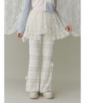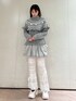 【トップス】 細かい羊やラメ糸のデザインが唯一無二なニット。長めの丈なので内側に折って丈を調節できます◎ロングボトムと合わせる際はチュニックのようにも着ていただけます◎ 【スカート】 トレンド感のあるバルーンスカートはスウェット生地なので甘すぎないです!ウエストもゴムになっていて着心地◎ 【パンツ】 毎回人気のレースパンツが、リボン付きで再登場!今回は少し丈が長くなり、高身長さんも着ていただきやすくなっています!フレアシルエットが美脚効果◎ 【シューズ】 レースとスパンコールが華やかでガーリーな厚底スニーカー。甲の部分がバレエシューズのようになっていて、カジュアルすぎないデザインです。レースアップは取り外し可能なのでお好みで使い分けていただけます!