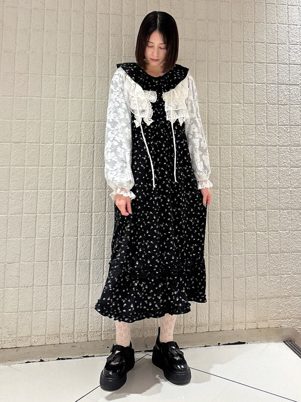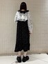 【トップス】 ショート丈のボレロは透け感がありレイヤードに活躍してくれます◎レースたっぷりで少し身幅や袖幅が広めでも重たく見えないのがポイント! 【ワンピース】 花柄とレースのリボンモチーフがポイントのワンピースは、すっきりめの丈と薄手の生地でストンとしたシルエットがとっても綺麗! 【シューズ】 存在感のあるお花のモチーフがかわいいスニーカーは、マジックテープで着脱も楽ちん! 厚底なので脚長効果も◎