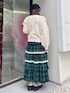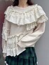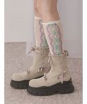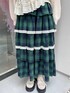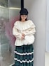 【トップス】 レースのフリルがついたガーリーなニット。柔らかい生地で着心地も◎ 【スカート】 人気のティアードスカートに、冬らしいチェック柄が登場!ウエストはゴムなので着心地楽ちんな万能アイテムです! 【シューズ】 メロウのデザインが足元もおしゃれに見せてくれるソックスブーツ。軽くて歩きやすいのでデイリーで使えます◎ 【帽子】 すっきりしたシルエットのハンチング!レースとリボンでガーリーなコーデにも相性◎ 【バッグ】 前回人気だったハートショルダーバッグの秋冬タイプが登場!マチがあるので容量も◎