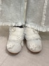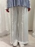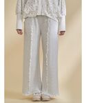 【トップス】 レイヤードコーデにおすすめのメロートップス。さらっとした生地で着心地も◎ 【チュニック】 ヴィンテージ感のある細かいギャザーとお花モチーフがかわいいチュニック。シフォン素材なのでさらっと着られて、コーデを華やかにしてくれます! 【パンツ】 ワイドシルエットでラフに着られるスウェットパンツ。裾とラインにフリル付きなのでラフすぎず、トレンド感も◎ 【シューズ】 フラットシューズでラフに履けるのにお花と繊細なレースが唯一無二なアイテム。様々な系統に相性◎