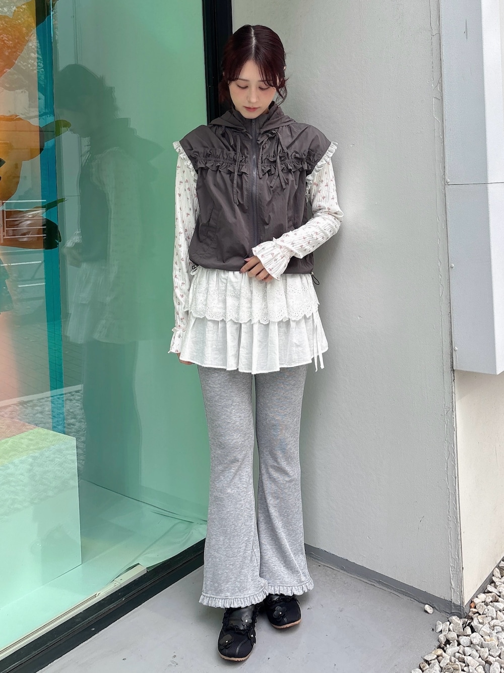 nanaka(merry jenny)のベスト「frill nylon jacket」を使ったコーディネート