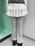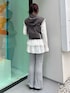 【トップス】 レイヤードコーデにおすすめのメロートップス。さらっとした生地で着心地も◎ 【アウター】 春らしい薄手のジャケットベスト。コンパクトなサイズ感でカジュアルになりすぎず、レイヤードコーデに使える万能アイテム◎ 【パンツ】 軽い生地でラフに履けるスカートパンツ。パンツはフレアシルエットなのでスタイルアップ効果◎ 【シューズ】 フラットシューズでラフに履けるのにお花と繊細なレースが唯一無二なアイテム。様々な系統に相性◎