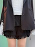 【ジャケット】 ヴィンテージライクなオーバーサイズジャケットですが、繊細なレースが大人ガーリーな印象に! 【トップス】 シンプルなカットソーにレースのタンクトップがレイヤードされているトップス。重ね着しなくてもおしゃれに! 【パンツ】 総レースにリボンがポイントのかぼちゃパンツ。長さも程よくあり安心感も◎ 【シューズ】 たっぷりのレースフリルがガーリーなスニーカーは、見た目以上に軽くて歩きやすいです!マジックテープなので着脱も楽!
