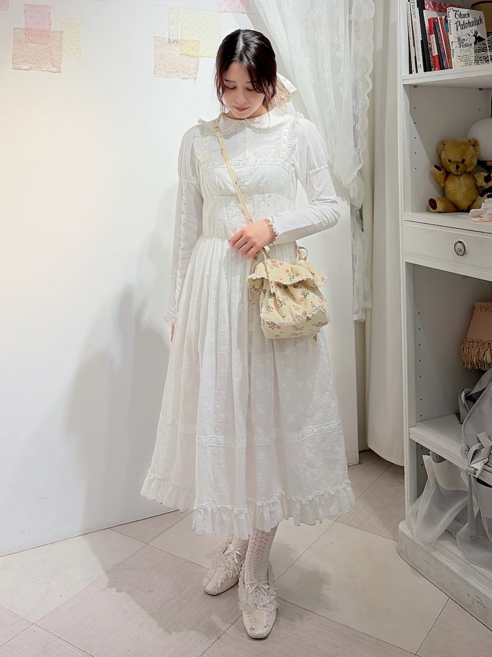 【トップス】 トレンドのポロシャツをガーリーに着られるアイテム。パフスリーブとコンパクトなサイズ感で女性らしさも◎ 【ワンピース】 コットンレースがカジュアルガーリーなワンピース。コルセット風のデザインでメリハリも◎ 【シューズ】 トレンド感のあるバレエシューズ。フリルたっぷりで気分が上がる一足! 【バッグ】 甘すぎない花柄でさまざまなテイストに相性◎なポシェット。底のマチもしっかりあるので使いやすさも◎