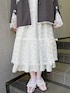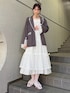 【ジャケット】 ヴィンテージライクなオーバーサイズジャケットですが、繊細なレースが大人ガーリーな印象に! 【ワンピース】 スクエアネックとコルセット風のデザインでスタイルアップ効果◎大人ガーリーなコーデに仕上がります! 【スカート】 アシンメトリーについたリボンがポイントのレイヤードスカート。ワンピースやボトムにあわせて華やかに◎ 【シューズ】 トレンド感のあるバレエシューズ。フリルたっぷりで気分が上がる一足! 【アクセサリー】 大きめのモチーフがたくさんついている華やかなネックレスは、デコルテの開いた服やタートルネックなどとの相性◎
