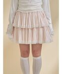 【ジャケット】 毎年人気の春ジャケット。ミニ丈と合わせてワンピース風に着るのもおすすめです◎総レースで華やかさ◎ 【スカート】 やわらかいスウェット素材のスカートは、動くと揺れるたっぷりギャザーでボリューム感がかわいい! 【シューズ】 スニーカーとローファーのいいとこどりなシューズ。軽くて歩きやすく、大きめのリボンがアクセントに!