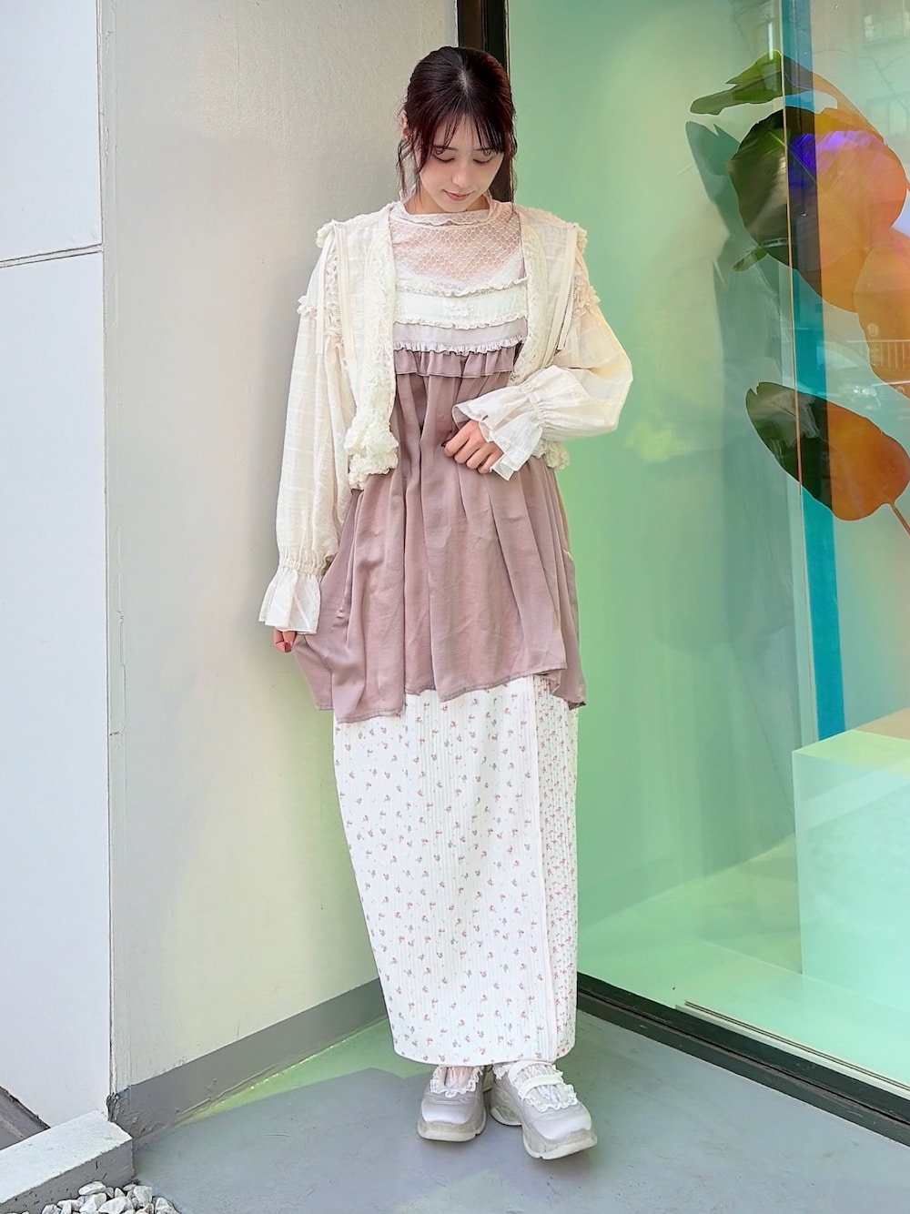 【トップス】 シアーとフリルが華やかなフーディー。ショート丈なのでスタイルアップ効果◎ 【トップス】 春夏らしい透け感のあるトップスはすっきりした印象なので暖かい時期の重ね着に大活躍してくれます! 【チュニック】 多色でレイヤード風のキャミチュニックは、胸元にポイントがあるので華やかさがあり、落ち感のある生地なので様々なボトムと相性◎ 【スカート】 2種類の花柄を使用しコーデを華やかにしてくれるスカート。ストレートのシルエットなので重たくならずに着られます。 【シューズ】 歩きやすい厚底スニーカーですが、サテン生地とレースでラフ見えしすぎない一足!