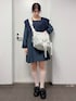 【ワンピース】 ふわっとしたシルエットに、存在感のある襟がかわいいワンピース。パンツレイヤードでカジュアルにするのもおすすめです! 【バッグ】 通勤通学、旅行など様々な場面で使える大きめバッグ。リボンのデザインでカジュアルすぎず、ガーリーさんからカジュアル好きさんまで幅広く合わせていただけます◎ 【シューズ】 スニーカーとローファーのいいとこどりなシューズ。軽くて歩きやすく、大きめのリボンがアクセントに!