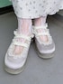 【トップス】 スクエアネックが大人っぽく、フリルとふんわりした袖のシルエットでガーリーさも演出してくれるブラウス。メリハリのあるシルエットなので着膨れしにくいです。 【スカート】 2種類の花柄を使用しコーデを華やかにしてくれるスカート。ストレートのシルエットなので重たくならずに着られます。 【シューズ】 歩きやすい厚底スニーカーですが、サテン生地とレースでラフ見えしすぎない一足! 【バッグ】 レースのデザインがガーリーなウエストポーチ。お散歩やちょっとしたお出かけに実用性◎アクセサリー感覚でも使えます!