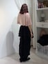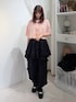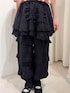 【トップス】 かわいらしいわんちゃんのプリントと立体のリボンがポイントのTシャツ。オーバーサイズなのでカジュアルに仕上がり、普段使いしやすいです! 【スカート】 アシンメトリーな形とすっきりした丈感でパンツとのレイヤードにおすすめなスカート。 【パンツ】 バルーンシルエットのパンツはトレンド感もあり着心地も楽ちん。レースがたっぷり使われていて、カジュアルになりすぎないのが嬉しいポイント◎ 【シューズ】 春夏らしいシアーのバレエシューズ。小さいリボンがたくさんついていて、足元までガーリーさ◎