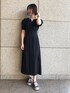 コットン素材とIラインのシルエットでカジュアルにもキレイめにもシーン別に使い分けられるワンピース。 胸元のスキッパーと袖のタックが女性らしさのある雰囲気に◯ 袖丈もすっぽり二の腕をカバーしてくれます。片側に入ったスリットが着用した際に立体感が出てロング丈でも重たくならず小柄な方にもオススメです! ウエストの切り替え位置も高めなので、脚長効果もあり! コットン素材なのでスニーカーでカジュアルに合わせてピクニックにも。 パンプスとフェイクレザーのバックなどと合わせてディナーやショッピングなどにも。シューズやbagを変えて着回しを楽しんでいただきたいです! 履いているパンプスはコーンヒールと、かかとが覆われていないデザインで、履き心地抜群です! ドレスはもちろん、デニムなどカジュアルなアイテムに女性らしさを足すアイテムとしても使っていただけます。