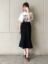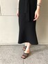 マーメイドシルエットが足のラインを綺麗に、ウエストのサッシュで腰回りもすっきり見せてくれるスカート。 同糸を使用したトップスの展開もありセットでの着用もオススメです。 ニットスカートなのでトップス次第で綺麗めにもカジュアルにも雰囲気を変えてコーディネートを楽しんでいただけます ◯ 私は普段使いしやすくカジュアルにTシャツとメッシュサンダルで合わせてみました。 スニーカーでもコーディネートが決まり日常の中でも活躍するスカートです。