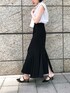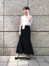 店頭でも大人気の女性らしいマーメイドスカート ◯ お仕事にも使っていただけるきちんとした見た目ですが、実はかなりストレッチが効いているので窮屈感のない楽な着心地! 裾にスリットと縦の切り替えが入っているので、歩きやすく揺れる裾も魅力的。 私はお仕事でも着ていただけるキレイめを意識してブラウスと合わせてみましたが、Tシャツやスニーカーのカジュアルスタイルもおすすめです! ブラウスはボトムスに合わせてボウタイの結び方を変えたり取り外しての着用が可能。デニムなどカジュアルなボトムにはリボン結びで女性らしさをプラス、コーディネートによって雰囲気を変えて着ていただきたいアイテムです!