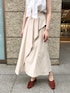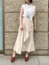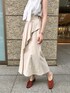 足元がポイントのワントーンコーデ ◯ フロントに施されたラッフルディティールが女性らしい印象のマーメイドスカート。 体のラインを拾わず腰回りもカバーしてくれるので、肌寒い季節には中にレギンスなどを仕込んでロングシーズン着ていただけます。 肩のギャザーで立体感のあるフォルムと、取り外しもできるボウタイ付のブラウスと合わせてキレイめにコーディネートしてみました! ワントーンでも小物やシューズで色味を入れるとメリハリがつくのでオススメです◎