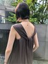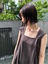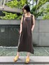 夏らしい素材の1枚でさらっと着れるワンピース。 シンプルなすとんとしたシルエットですが、片側のスリットやバックスタイルで女性らしい魅力もあるワンピース。 太めに作られた肩紐が二の腕もすっきり見せてくれるので1枚で着てもコーデが決まります! フィット感のあるノースリーブやTシャツをレイヤードするのもオススメ!夏場の着回しの幅が広がります! 後ろのリボンは長めに作られているのでゆるく結んでも、背中を隠すようにしっかりと高めの位置で結んでも◎ 落ち着いた色味のワンピースだったので足元で色味を足してみました!丸いフォルムのヒールが歩きやすく安定感のある履き心地のサンダルです。