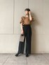 履くと形が綺麗で感動するパンツが入荷しました!! ワイドすぎずストレートのキレイなシルエットが魅力のパンツですが、ウエストはゴム使用なので驚くほど楽な着心地です! 落ち感のある素材でブラウスやニットなど何にでも合わせやすく、日常使いにもお仕事にも使っていただけます。 腰回りや脚のラインを拾わないので、肌寒い季節にはレギンスを中に着込んでいただいてブーツスタイルもオススメ! ワイドパンツは長めで着ていただく方がバランス良く綺麗なので高身長の方はMサイズでの着用がオススメです!S.M共にウエストのゴムはしっかりしているのでご安心下さい。 私はボリューム感のあるブラウスとキレイ目に合わせてみました! 背中の開いているデザインですがインナーは見えないように考えられているので安心です。 ウエスト周りのすっきりとしたボトムスやジャンバースカートとの合わせもオススメです。