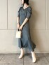 落ち感のある微光沢の楊柳サテンを使用した上品なワンピース ◯ 同色のフローラルジャガード加工が施されており光の当たり具合でキラキラと表情を出してくれます。 ウエスト位置は高いので腰回りを拾わずすっきりとした印象で着ていただけます。 私はオススメの白いショートブーツと女性らしさも残しつつカジュアルにスタイリングしてみました! パンプスと合わせていただくとお食事やお顔合わせにもぴったりなキレイ目ワンピースとしても使っていただけますよ。