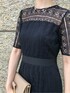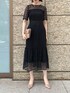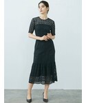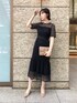 足首の見える丈感のすっきりとしたドレス ◯ ウエスト位置が高く後ろのリボンで好きな具合に絞れるので細見えも叶います。 総レースドレスですがテープレースデザイン、長めのティアード切替で可愛くなりすぎない上品な印象にも見せてくれます。 Iラインのシルエットがトレンドにも左右されないので長く大切に着ていただきたいドレスです。 結婚式やお呼ばれドレスとしてもオススメ! バックの小さいシーンでも安心のポケット付きです ◎ ヒールが8cmあるとは思えないとお客様にもスタッフにも好評の歩きやすいパンプスと、小物はベージュで明るい印象で着てみました。 光沢感のあるサテン素材なのでドレスだけでなくデニムやオフィススタイルにも日常に溶け込むデザインです。