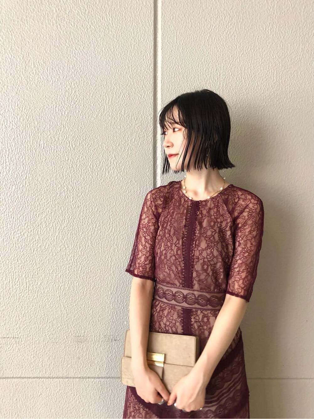 新色が追加され待望の再入荷ドレス! 私は秋冬らしい目を惹くボルドーをチョイス! レースの柄やカラーが引き立つように裏地がベージュになっているので、華やかでおしゃれ見えします! ウエスト位置も高めでタイトなデザインが、女性らしいフォルムとスタイルアップが叶います。 丈がしっかりあるので、高身長の方にもとても喜ばれるドレスです! 結婚式や特別な日のワンピースとしても人気で、バックが小さいシーンでも安心のポケット付きになっています。 ボルドーのドレスなので小物はサテン素材のベージュカラーで統一しました! エナメルとは違った上品な光沢がモダンでおしゃれな印象になります!バックとシューズは色味や素材感を合わせていただくのがオススメですよ。