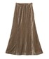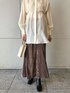 新感覚のワッシャー加工のベロアスカート。 ベロア特有の光沢がワッシャー加工でより際立ちニュアンス感のあるおしゃれな印象にしてくれます。 ベロア素材なのでマーメイドシルエットでも甘すぎず着れるのもお気に入り! すっきりとしたシルエットが綺麗で冬にはオーバサイズのニットをゆるっと着たいスカートです ◯ 楊柳素材のオーバーサイズのヨークがポイントのブラウスと秋を意識してカジュアルに合わせてみました! ブラウスはヒップまで隠れる丈感なのでパンツですっきりとしたスタイリングもオススメです。