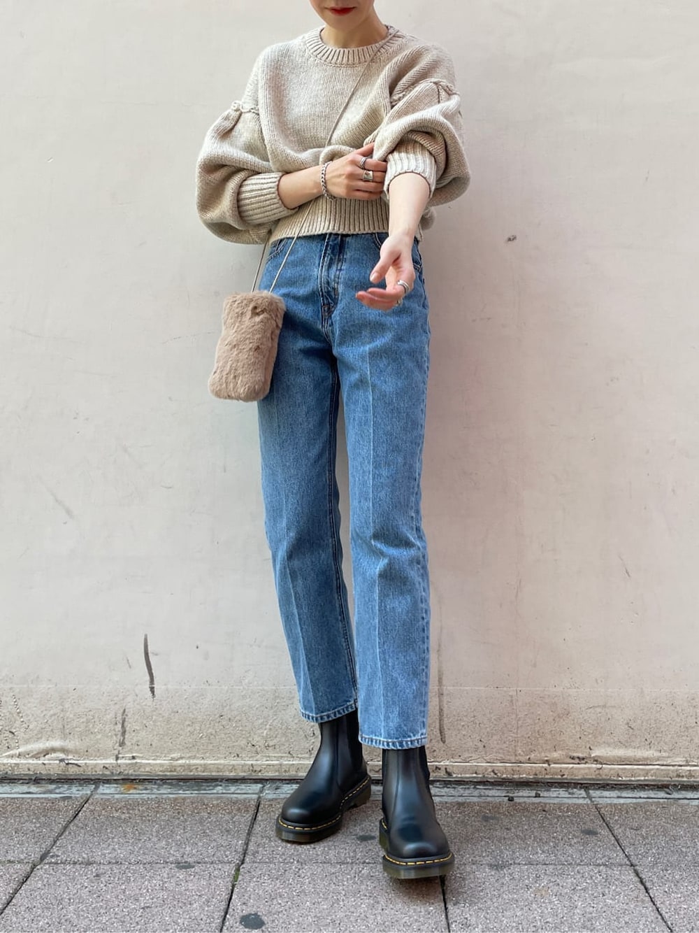 【TOPS】ゆったりとしたニットは1枚あると活躍しますよね!肩落ちデザインで肩幅も華奢見え。何よりふっくらとしていて柔らかい着心地がお気に入り! 【DENIM】がっつりハイウエストでスタイルが盛れるLAGUNAMOON定番デニム。テーパードシルエットがニットを入れても腰周りを拾いにくく綺麗!デニム本来の硬さがウエストにフィット、着ているうちに身体に馴染んでくるのでジャストサイズを選んでいただくのがおすすめ。