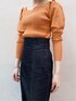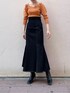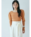 【TOPS】オレンジを主役にしたコーディネート。LAGUNAMOONのパフスリーブは肩の内側からボリューム感出るように、こだわりの詰まったデザインなので肩幅を強調することなく着ていただけます。デコルテが程よく空いているのでデートやオフィススタイルにもオススメです! 【SKIRT】こちらのマーメイドスカートは裾の切替位置が高くお尻のラインも拾いにくいので腰周りのボリューム感を気にされている方にもオススメ!甘くなりすぎず大人っぽく着ていただけるデザインです!裾にプリーツデザインが入っているのでマーメイドスカートとは思えない程歩きやすいのでお気に入りです!