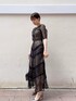【ONE PIECE】裏地がベージュになっているのでレースの柄の際立つお呼ばれにもぴったりの華やかなドレス。私は168cmなのでMサイズで着用しましたが、ウエスト位置が骨盤よりも高く設定されているので大きい印象にもならずに着れました!両側にポケットが付いているので小さいバックでも安心なのも嬉しい! 【COAT】LAGUNAMOONのトレンチコートはとろみのある素材を使用しているので、シワにもなりにくくお値段以上に高級感がありドレスにもぴったりです!プリーツデザインがしっかりと裾まで入っているので動く度の揺れ感が素敵で、後ろ姿で周りと差がつきますよね! 【SHOES】足先が少し上がっているので長時間歩いても疲れにくく、24.5cmで普段ヒールを履かない私でもMサイズでぴったり履けました!大粒すぎない上品な輝きのラメなので日常にも使いやすいパンプスです。