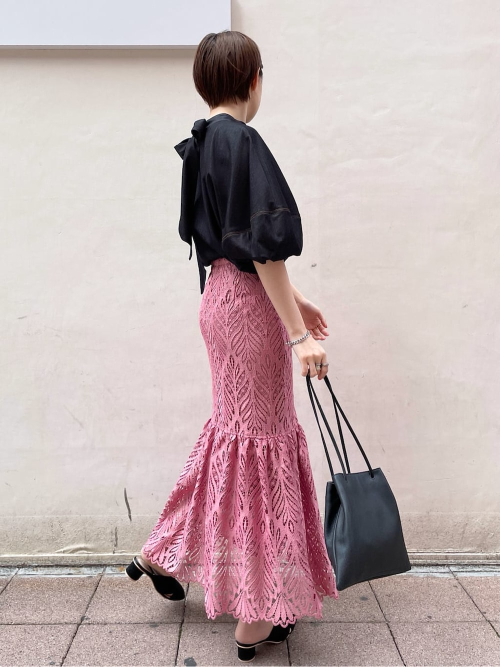 【TOPS】デニムに見える素材感のブラウスなので着心地が柔らかく肌への刺激もなくさらっと着れました。微光沢感のある素材なのでカジュアルにも綺麗めにも着こなしの幅が広が広がるのが嬉しい! 【SKIRT】このスカートは裾の切替位置が高いので歩きやすい印象でした!リーフレースなのでフェミニンにもなりすぎずスニーカーで普段使いにもおすすめです!