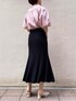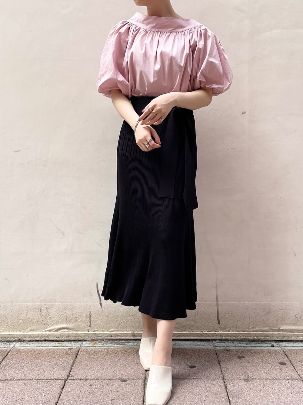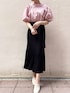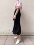 【TOPS】肌触りのさらっとした綿素材のブラウスなのでジメジメする梅雨時期にもオススメ。デコルテが開きすぎないのでショートカットでも安心して着れました! 【SKIRT】伸縮性のあるサマーニット。168cmでMサイズ着用しましたが、ウエスト部分は調節可能なのでジャストサイズで着れました。もちもちした素材で楽な着心地なのでTシャツスニーカーのラフなスタイリングもおしゃれ見え間違いなしです!