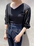 ●梅雨時期にもぴったりなニットを使ったデニムコーデ。 【TOPS】接触冷感のニットは涼しく着れてジメジメした天気の日も快適!少し肩を落としてデコルテの開きを楽しんだり、オフィススタイルにはVネックにして着ることも可能です。デコルテが開いているのでカーディガンとの相性抜群◎冷房&日焼け対策のできるUVカット入りのカーディガンもオススメです。 【PANTS】168cmでSサイズで着用しましたが骨盤上でウエストが止まるので嫌な締め付け感はなく脚長効果抜群でした。センタープレスが入っているので綺麗めなブラウスと着ても可愛いデニムです。