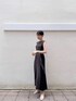 ●スタイルアップ効果抜群のワンピース。【ONE PIECE】サイドの配色が縦のラインを強調してくれるので抜群に細見え◎着丈が長く168cmでSサイズでくるぶしまで隠れるので、スニーカーなどのカジュアルな着こなしも可愛く着れる!紐も前後で結ぶ位置を変えて着れるのでマンネリしない! 【SHOES】24.5cmの足が大きめの私でも楽に履けたサンダル!ヒールの幅が安定していて靴底がフワフワなので、普段ぺったんこの靴が多い私でも疲れにくく楽に履けました