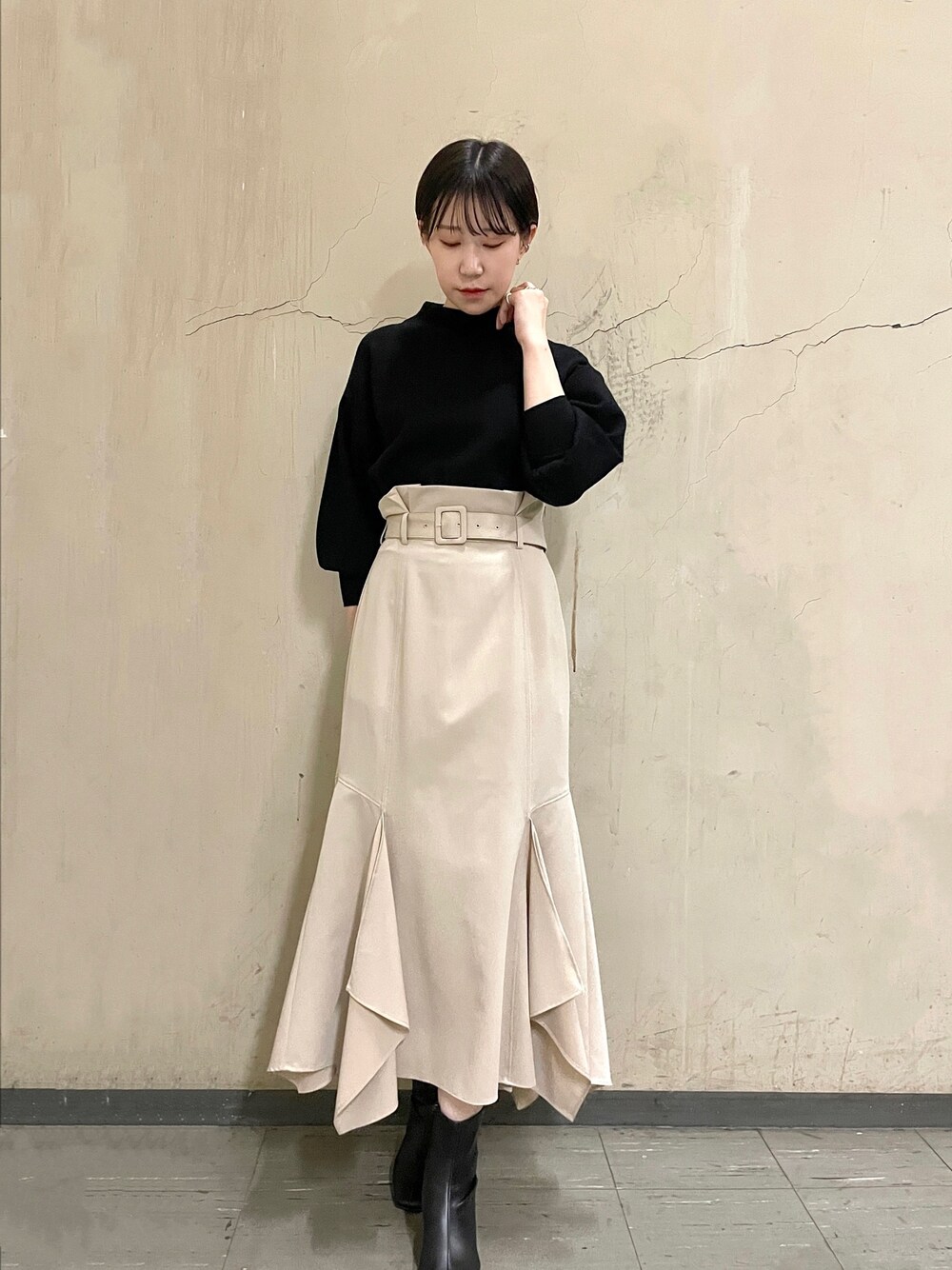 ●コートのリールで着ていたキレイめコーデ 🤍 【TOPS】ストレッチ性に優れた素材で、部屋着のような着心地の楽さがスタッフやお客様に好評です 🧶 ニットは1年で着なくなってしまうことが多かったのですが、このニットは毛が入っていなくて毛玉になる心配もなく来年再来年と大切に着れます✊🏻 【SKIRT】落ち感のある素材で腰周りに丸みのあるシルエット。168cmで骨盤のしっかりした私が、ニットを着込んでもヒップラインに響かず着れました! ウエストのベルトでサイズ調節もしていただけるので華奢な方にもオススメです!!