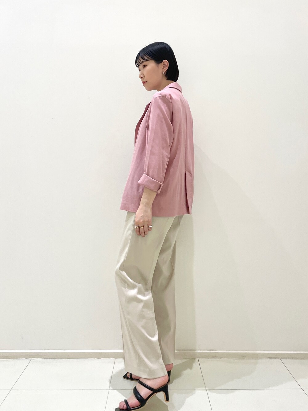 ●春らしいピンクが主役のコーデ 🌷 【Outer】目を惹くカラージャケット🍃 柔らかい素材で裏地なし!夏場までロングシーズン着こなし可能なんですー!! 長すぎずすっきりと着れる着丈なのでパンツスタイルやワンピースなど幅広く合わせていただけます👏🏻 【Tops】大人気殿堂入りニット🤍接触冷感で夏場も涼しく快適です!! フレンチスリーブで二の腕もスッキリ着痩せ効果もあり!お家で洗濯可能です◎ 【Pants】骨盤の上からコルセットのようにウエストを強調してくれるので脚長効果抜群!168cm/ Mサイズ 踵までかかる丈感、骨盤で止まるのでウエストがずれる心配もなかったです👏🏻 ハリ感のあるサラッとした素材なのでTシャツとも相性◯