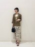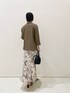 ●スカート着回しオフィスカジュアルイメージ📝 【Outer】裏地無しでさらっとした着心地なので夏までノースリーブのワンピースやTシャツ合わせで着れます🤎 袖は折り返したデザインで手首が見えるのでかなりスッキリとした印象になります😌! 【Tops】キラキラのラメがときめく冷んやりサマーニット🤍手洗いも可なので夏場も扱いやすい!! 鎖骨が綺麗に見えるスクエアデザインなのでジャケットのインナーとしても↑ 【Skirt】線書きのボタニカル柄が大人っぽいスカート🌿ナチュラルなナローシルエットだからタイトやマーメイドが苦手な方にもおすすめです!! 大きめの柄が甘々にもならないから春夏→Tシャツ×サンダル、秋冬→ざっくりニット×ショートブーツでも ◎