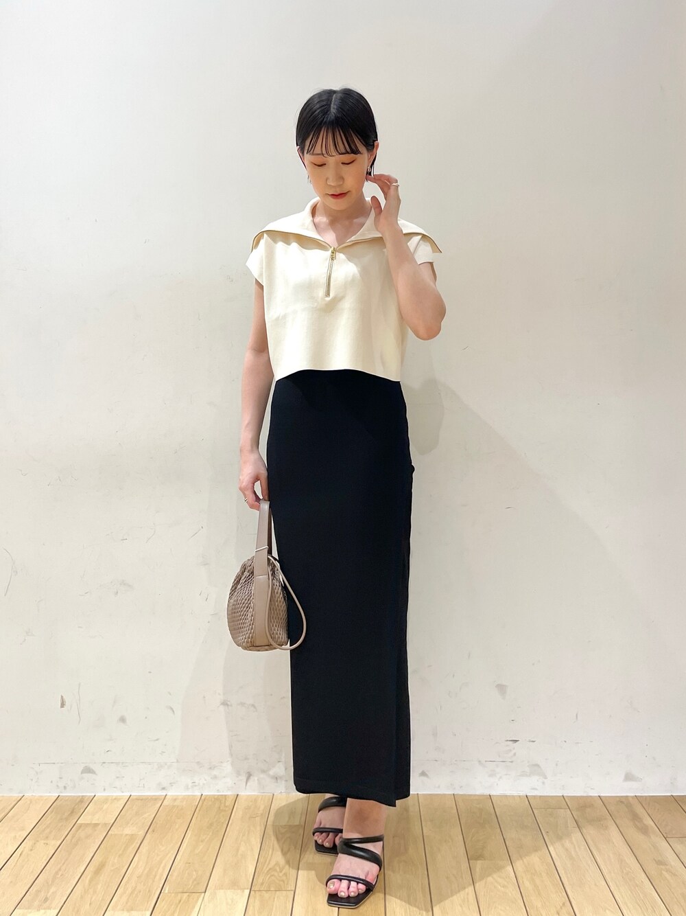 ●同じ素材のニットでキレイめセットアップコーデ🌿 【Tops】ZIPのゴールドが高級感あってキレイめに着れるサマーニット🤍接触冷感素材なので真夏にもおすすめです!! ストレートのパンツやスカートと合わせてもウエスト位置が高く見えます◎ 短すぎないので168cmでもお腹見えません ✊🏻 【Skirt】ZIPニットと同素材のスカート🍃伸縮性抜群で自転車にも乗れる!! Mサイズは着丈も長めなので168cmでぴったり!!ウエストは骨盤で止まるので落ちてもこないです◯ (Sは通常丈です) 網目の細かいニット地なのでブラウス×パンプスでお食事、キレイめコーデでお出掛けしたい日にもぴったり🤍