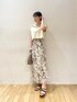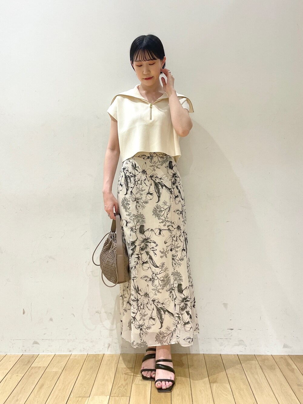 ●ZIPニット着回し🔍 【Tops】ZIPのゴールドが高級感あってキレイめに着れるサマーニット🤍接触冷感素材なので真夏にもおすすめです!! ストレートのパンツやスカートと合わせてもウエスト位置が高く見えます◎ 短すぎないので168cmでもお腹見えません ✊🏻 【Skirt】線書きのボタニカル柄が大人っぽいスカート🌿ナチュラルなナローシルエットだからタイトやマーメイドが苦手な方にも履いてみてほしい! 大きめの柄が甘々にもならないから春夏→Tシャツ×サンダル、秋冬→ざっくりニット×ショートブーツでも ◎