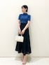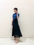 ●雨の日でもテンション上がるカラーコーデ 🩵 【Tops】さりげない肌見せが大人可愛いニット、新色登場しました🫶🏻!! 柔らかい素材のニットなので体のラインも出しすぎずに着ていただけます!肩紐は横に追いやってるとインナーは変えずに着ていただけますよー!! 【Skirt】シフォンの軽くて楽々なスカート🤍168cm/ Sサイズ着用ですが着丈長めなのでサンダル合わせでキレイめに着れました!! 歩くと裾がふんわり広がるので、シンプルなTシャツ合わせでも可愛くなりそう👏🏻👏🏻