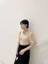 ●雨の日でも楽々なニットスカートとキレイめコーデ 🫶🏻 【Tops】シャツよりもキレイめに着こなせるニット! パフスリーブ部分がシアーになってるので涼しげで肩幅もカバーできるところが好き🤍Vネックデザインなので首も長く見えてフェイスラインもすっきり着こなせます 👏🏻 【Skirt】伸縮性抜群で自転車にも乗れる万能スカート🍃 Mサイズは着丈も長めなので168cmでぴったり!!ウエストは骨盤で止まるので落ちてもこないです◯ (Sは通常丈です) 網目の細かいニット地なのでブラウス×パンプスでお食事、キレイめコーデでお出掛けしたい日にもぴったり😌