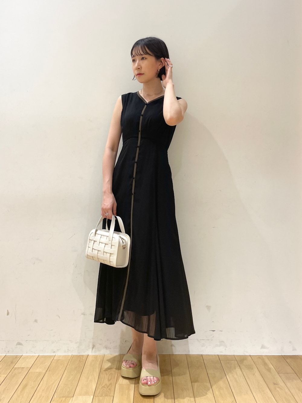 ●大人可愛いワンピースコーデ🤎 【Dress】ブラウンのパイピングが大人可愛いワンピース 😌 透け感のあるさらっとした生地が涼しくて楽々〜🫶🏻 紐が付いているのでウエスト幅も調節可能なのも◎Mサイズは着丈が長めなのでフラットシューズでも可愛く着れそう👏🏻