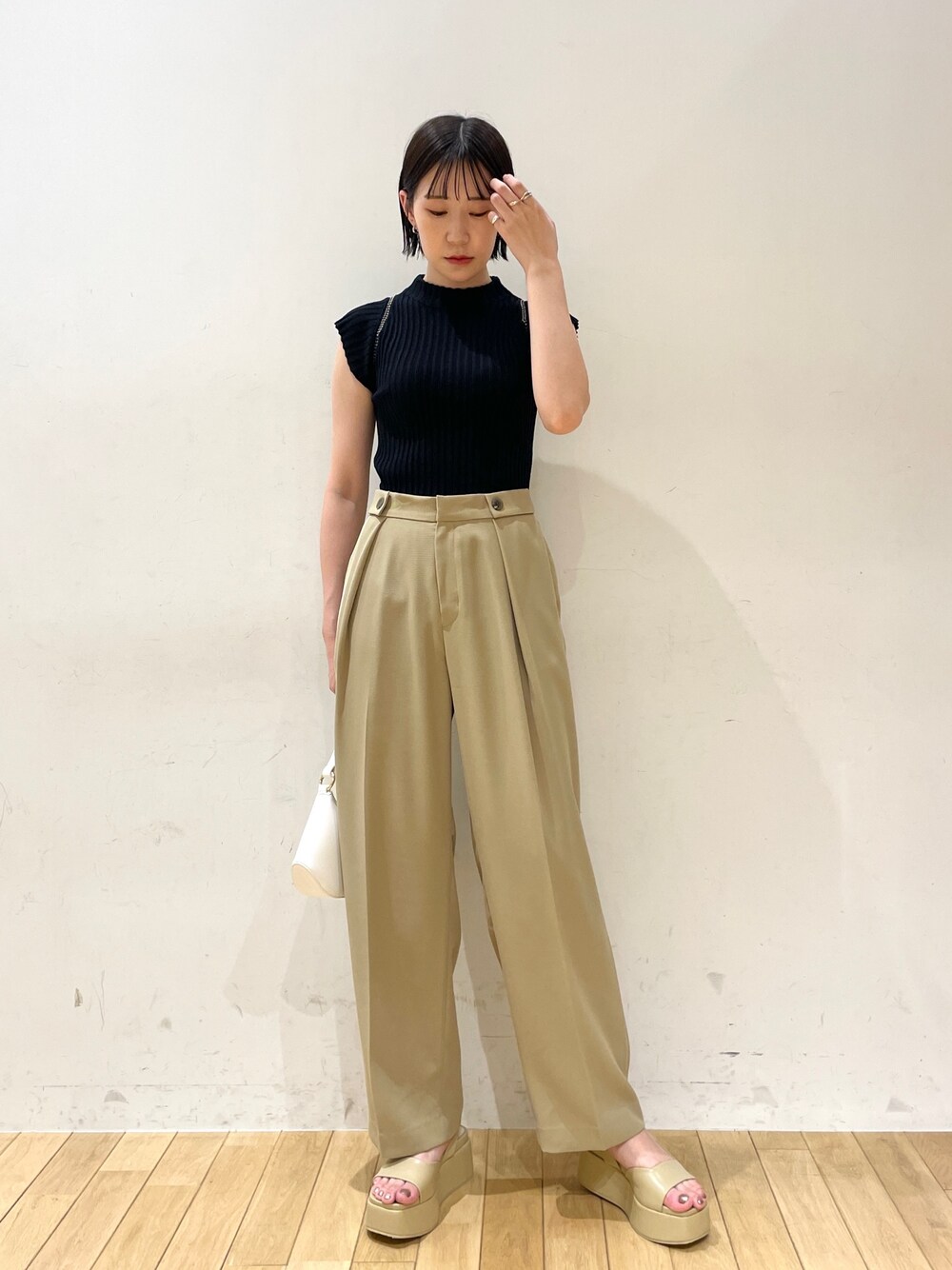 ●秋も意識したシンプルコーデ🍂 【Tops】毎年買い足してくださる方が多い定番ニット!しっかりとしたリブ編み&フレンチスリーブなので二の腕もボディラインもすっきり見えします👏🏻👏🏻 薄手の生地なので夏場もさらっときていただけます!! 【Pants】腰回りにタックが入ったストレートパンツ🔍 腰回りをしっかりとカバーしてくれるので、トップスをインしてもすっきり◎ Mサイズは着丈が長めなので高身長さんにもおすすめ!(Sサイズは通常丈です)