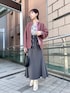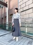 ●大人可愛いピンクコーデ🌷 【Tops】グレーベースの大人可愛い花柄ブラウス🤍🤍ノーカラーで鎖骨がしっかりと見えるデザインなので花柄も甘々にならずに着れる所が好き 😌♡ さらっとした生地感なので季節の変わり目に万能!! 【Skirt】ハイウエストで腰の位置でしっかり止まるので168cm/ Mサイズでぴったり👌🏻着丈も足首の見えるくらい! とろんとした生地感なのでオフィスカジュアルにもおすすめです🌿