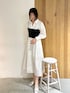 ●大人可愛いシャツワンピ ♡ 【Dress】ニットビスチェがセットになったトレンド感満載のワンピース🫶🏻 ビスチェは取り外し可能なのでシンプルなUNIQLOのシャツに合わせても可愛くなりそう✔️(肩紐の長さも調節できます!) 168cm / Sサイズ着用 Sサイズだと足首よりも少し上なので高身長さんにはMサイズがおすすめ!!