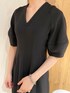 ●前後2WAY!優秀ワンピ 🖤 【Dress】立体的なシルエットで二の腕&腰回りのラインを拾わないワンピース😌 ウエスト位置も高く、くびれがしっかりと出るので骨格に左右されることなく細見えします👏🏻 168cm / Sサイズは足首上で着心地は締め付け感もなく楽々◎高身長さんには丈長めのMサイズもおすすめです! 前後2WAYなので着回しを楽しんでいただけます✔️Vネックは深めなのでキャミソールを見せて着るのもおすすめです!