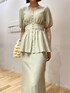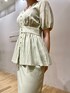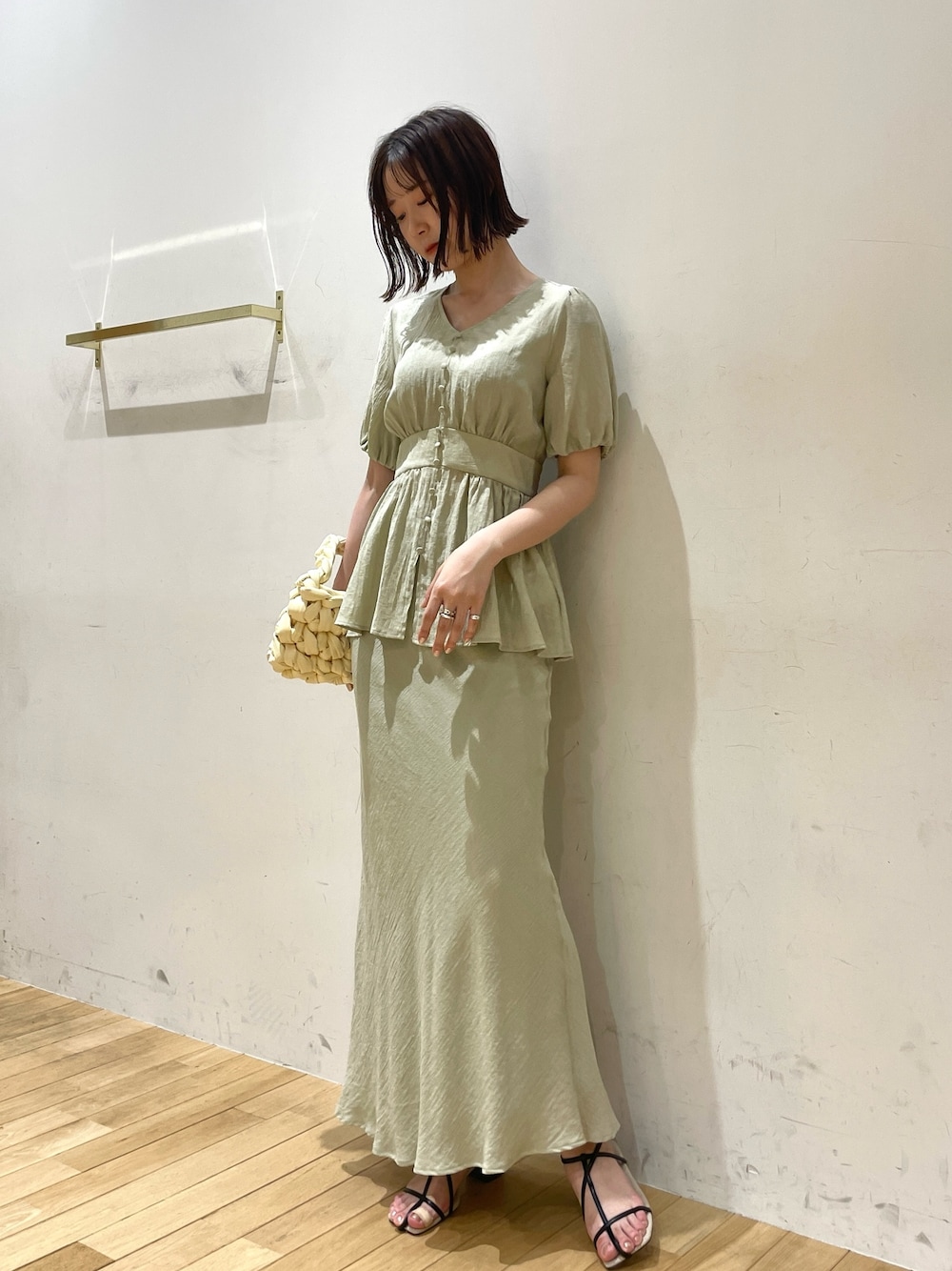 ●セットアップ着用可能item着回し①🌿 【Tops】サテンのさらっとした上品ブラウス🤍 胸下でふわっと広がるデザインなので下腹をしっかりカバー&脚長効果抜群◎ デニムパンツやタイトスカートとも幅広く着回し可能 🫶🏻 【Skirt】ブラウスと同じ素材のサテンスカート🌱🌱 ミントグリーンが可愛くて一目惚れ♡ ヒップ上がって見えるマーメイドシルエットなので、UNIQLOのTシャツとシンプルに着ても可愛い!!! Mは着丈長めなので高身長さんはMでの着用がおすすめ!(Sは通常丈です) 168cm / M着用↑